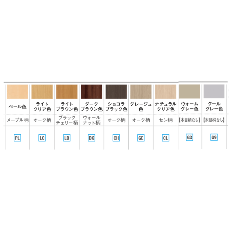 色により品番が異なります。(PL,LC,LB,DK,CH,GE,CL,G3,G9)