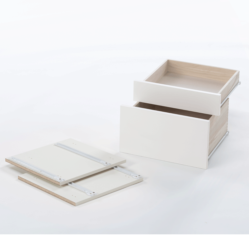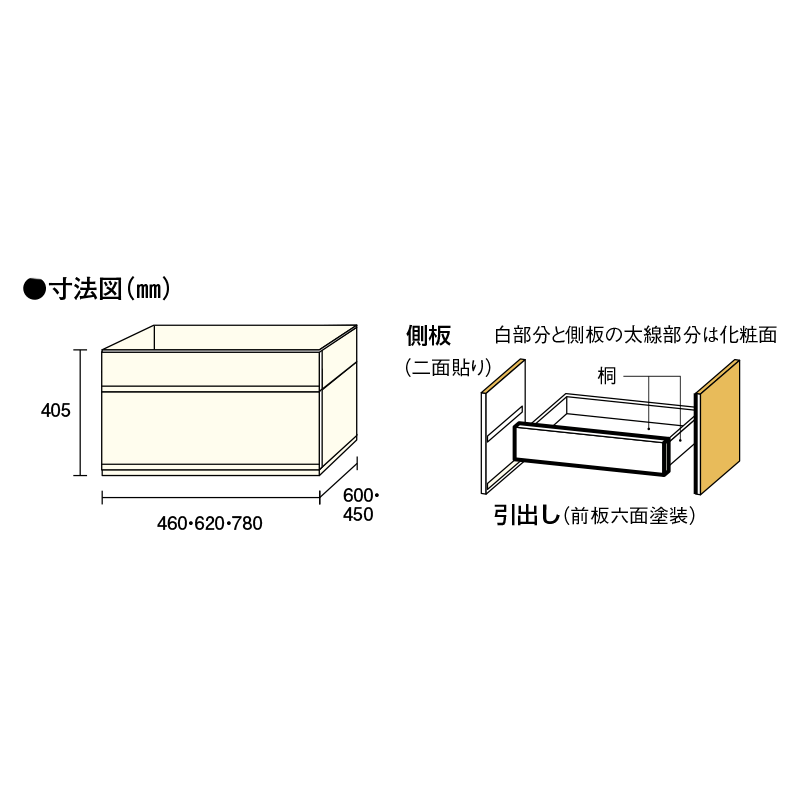 同梱品:引出し×2、引出し用レール側板×2、引出し用レール側板取り付けビス×8、引出し用レール側板位置決めダボ×4