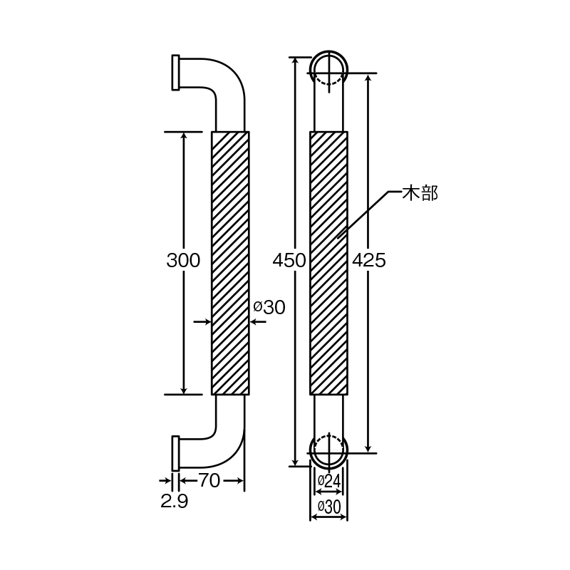 コの字型バー引手