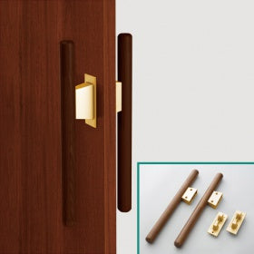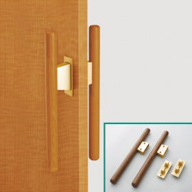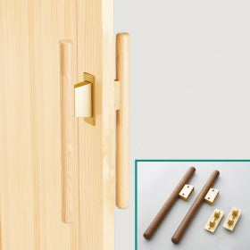 引き戸用バー引き手で、握りやすくするため、直径32mmの木製丸棒を組みつけています。通常の引き手から取り換え可能です。