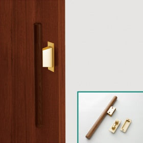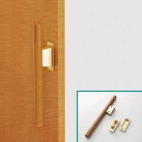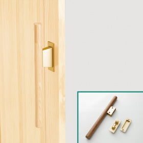 引き戸用バー引き手で、握りやすくするため、直径32mmの木製丸棒を組みつけています。