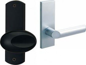 和室と廊下を仕切るドア用のレバーハンドルセットです。ハンドルセットは和室側が黒色塗装で、洋側(廊下)はサーチメッキ(艶落とした)処理しています。