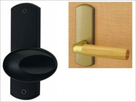 金属表面が金色塗装でグリップ部が木質のレバーハンドルですが、既に生産終了しております。取替えが必要な場合には、現行品(J、G型)から選んで下さい。