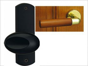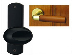 廃盤品のドアのレバーハンドルです。取替えの場合には、ドアに追加工してから現行品のZH105D-EB-□をご使用下さい。