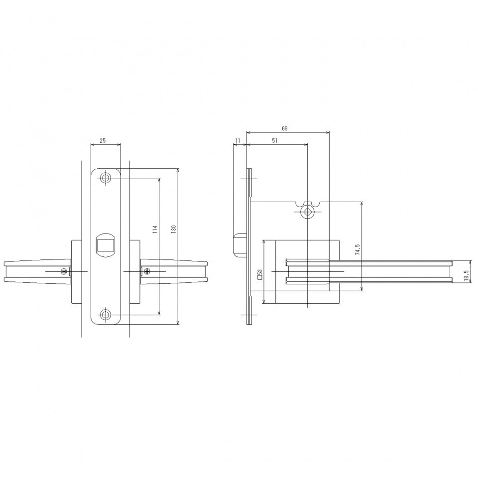河淳製のレバ―ハンドルセットです。レギュラー品の錠ケースとは互換性はなく、ドアに専用の切り欠き加工が必要です。こちらはレバーハンドルと錠ケースのセットです。