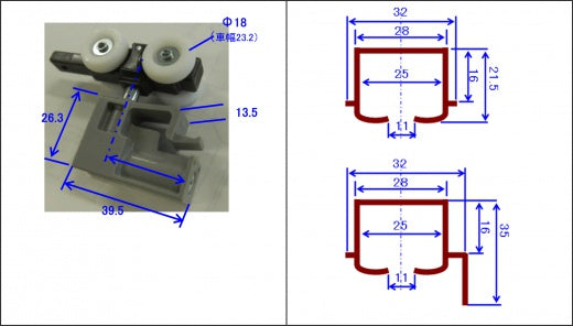 アルシャルル用の吊車です。扉との連結部以外の吊車本体形状は1・3・4・5型と同じですが車輪にベアリングは入っていません。