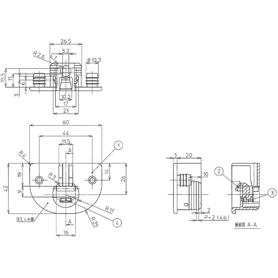 ジュピーノクローゼットドアの裏面上下に圧入されています。上ランナーと扉を締結させる部品部品です。交換するには、ドアの取り外しと専門技術が必要です。