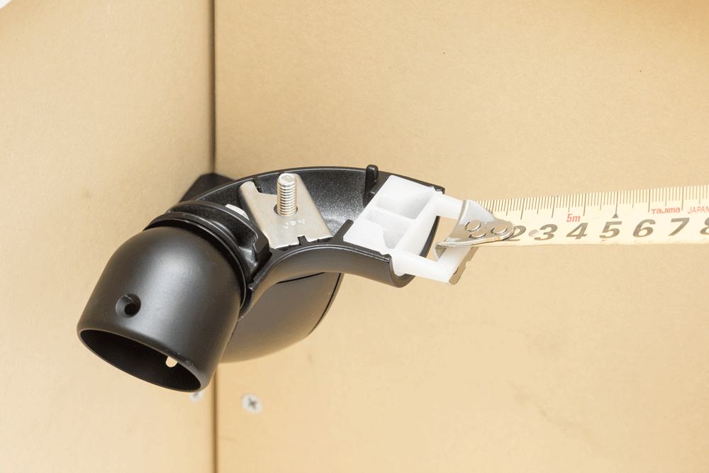 計測アタッチメントで一人でも簡単に丸棒手すりの長さを測定することができます。カップを外し計測アタッチメントをセットして、丸棒手すりの寸法と簡単に測れます。