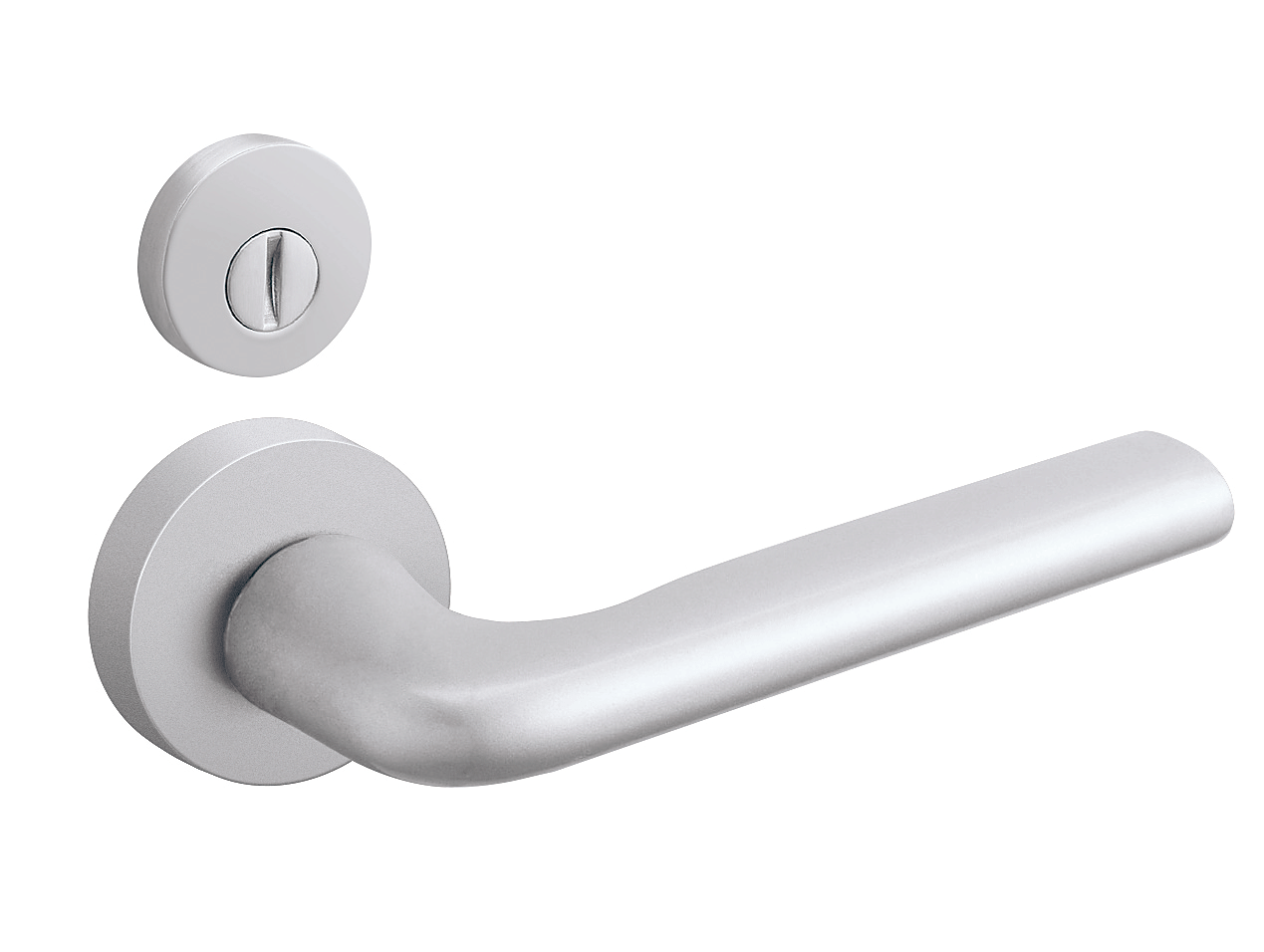 ドアをロックする機構を備えているレバーです。外側からコインなどで非常解錠できます。個室などのドアに最適です。