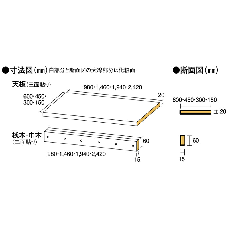 天板・桟木・巾木セット